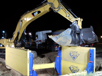> Box base: può essere presente un prescavo profondo massimo 1,25 m e lungo tanto quanto il pannello di blindaggio e comunque in conformità alle norme vigenti. Le quattro catene vanno agganciate negli anelli di sollevamento, il box viene quindi calato nello scavo, avendo cura di ricoprire gli eventuali vuoti verso il bordo scavo. In questa fase, gli operai non sono chiaramente all’interno dello scavo. Si prosegue di circa 0,50 m e si pressa il box sia da un lato che dall’altro. Si deve fare in modo di non sbilanciare troppo i pannelli ed in particolare il dislivello non deve superare 0,50 m e la pendenza dei distanziali non deve andare oltre ± 8°. L’operazione va ripetuta fino a raggiungere il fondo scavo.